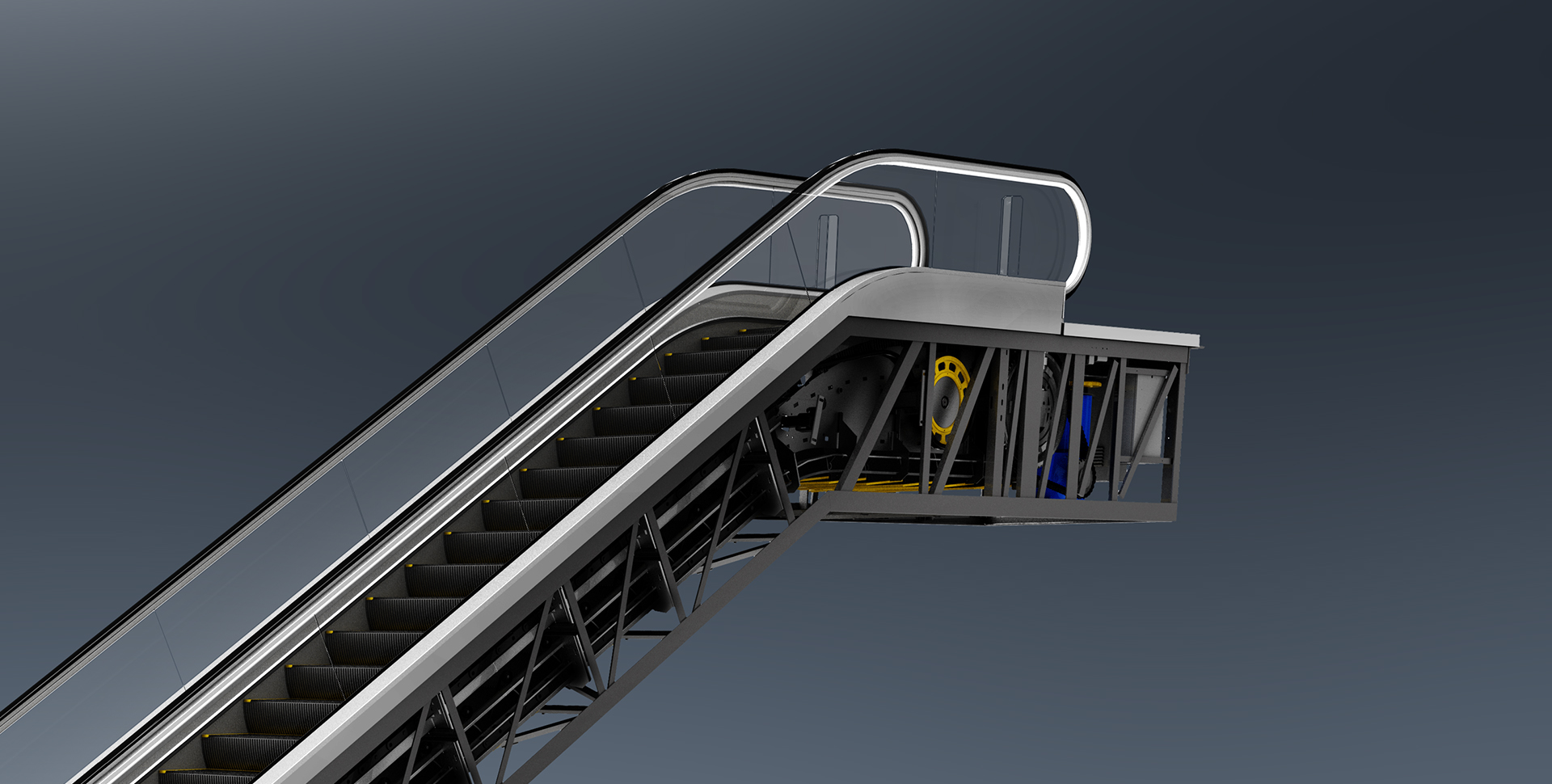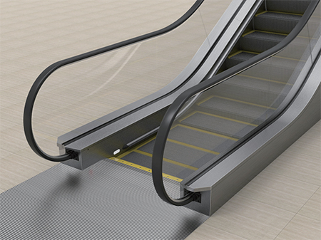 梯路導軌限位結構,導正精度高,確保梯級長期穩定、精準運行,大大降低扶梯運行噪音。